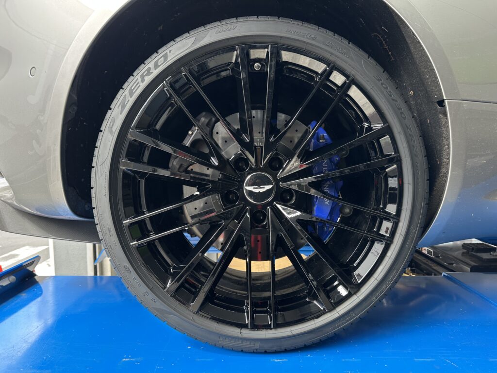 イギリスの気品と、圧倒的なパワーを兼ね備えたアストンマーティン『DBS Superleggera(DBS スーパーレッジェーラ)』のタイヤ交換を承りました!