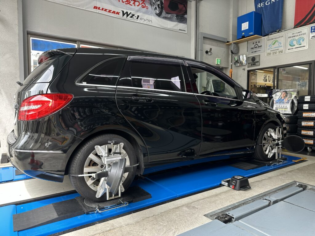 【アライメント調整】フロントタイヤの内側が摩耗する原因は?メルセデスベンツBクラスのアライメント調整をご紹介!墨田区のアライメント調整はお任せください!