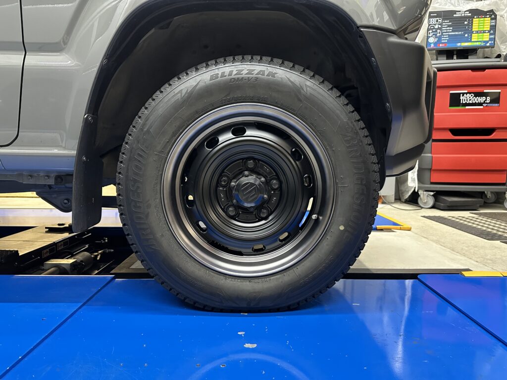 「スズキ」ジムニーのスタッドレスタイヤ履き替えです。