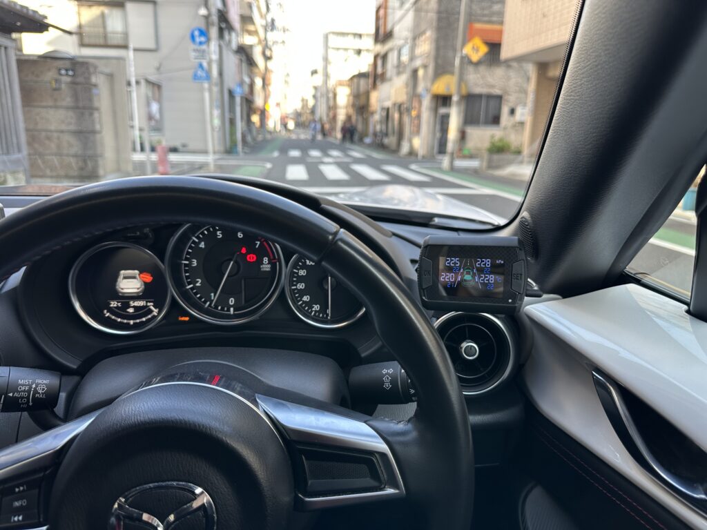 車内のモニターでリアルタイムの空気圧と温度を確認できる後付け型の空気圧センサーです。